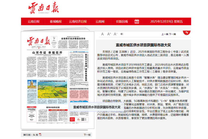 - 《云南日報》頭版:宣威市城區(qū)供水項目獲國際市政大獎